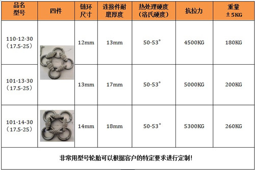 保養(yǎng)鏈耐磨性好,抗疲勞性強,根據(jù)使用條件壽命達3000-8000小時。拆裝方便,省時省力,產(chǎn)品規(guī)格齊全,可與進口裝載機所匹配,輪胎保護鏈,采用高科技耐磨材料制成其結(jié)構(gòu)新穎緊湊,性能穩(wěn)定,主要適用于礦山作業(yè)的裝載機,其輪胎磨損快,使用壽命短,輪胎價格昂貴,使用成本高,將本產(chǎn)品嚴密的包裹在裝載機的輪胎上,可以有效的保護裝載機的輪胎,不被尖銳的石塊劃傷刺破,延長了輪胎的使用壽命,使用一條輪胎保護鏈,能節(jié)省十條輪胎以上的費用還能提高裝載機的工作效率和安全是礦山作業(yè)的必備品。